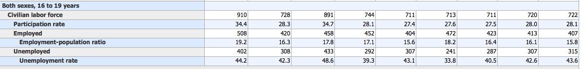 Analysis: African American Women had a significant change in their unemployment rate with a 250 basis point drop in their unemployment rate with a negligible change in their participation rate. African American Men saw a 80 basis point increase in their unemployment rate, but also experienced a significant 130 basis point increase in their participation rate. African American Teenagers always the most volatile group historically saw their unemployment rate drop by a staggering 1,170 basis points, but it seems like it woas also saw their participation rate rise by 750 basis points on the back of a strong 110,000 jobs added in May.